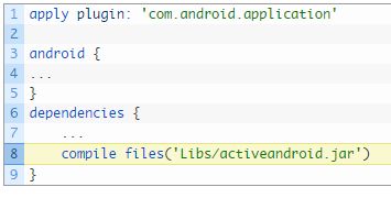 - ActiveAndroid.jarをAndroidStudioのapp\libsの中に入れる